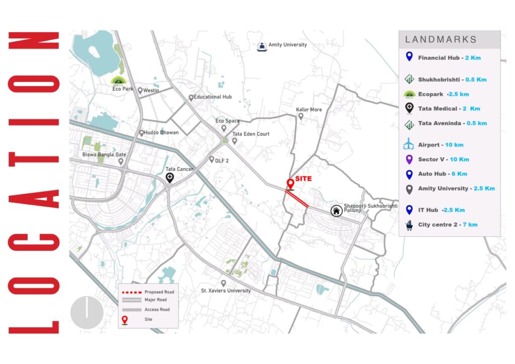 2. Nearest landmark: Close to TATA AVENIDA & Shapoorji Sukhobrishti Housing Complex ;